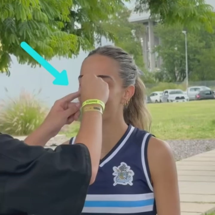 Asegurate de que la piel esté limpia, seca y sin cremas ni maquillaje para que el adhesivo se fije bien. - Colocá los parches adhesivos